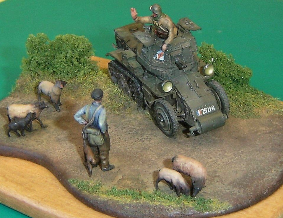 • The vehicle commander was “stolen” from the Somua SAu 40 kit, also from Minitracks. He was reworked using Milliput, his arms came from Preiser and Hasegawa and were adapted to fit the pose.