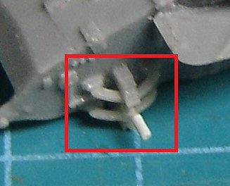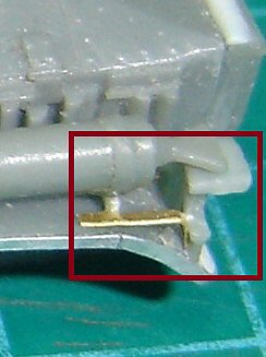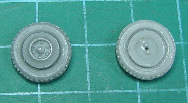 The wheels are nicely reproduced, their tread corresponding with the photos. The hole in the middle were made deeper (from 2 to 3mm), while I replaced their axles with new ones, a tad longer in order to get a stronger fixation. The brake cables, very obvious on the pictures, are scratch built using some copper wire.