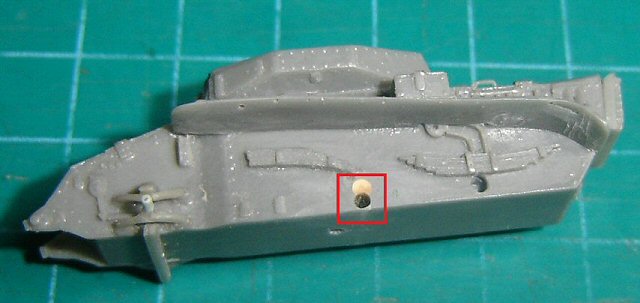 To get the correct distance, new holes for the sprocket and road wheels were drilled nearer to the bottom plate (1mm lower) after filling in the original ones.