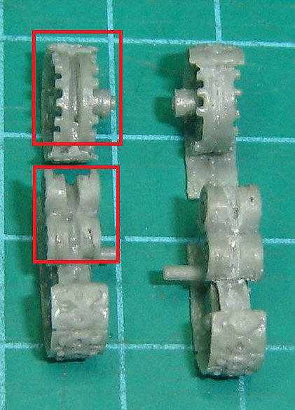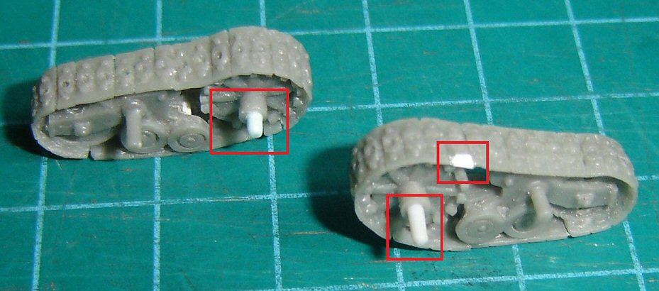Some tracks elements were broken while handling them and carefully needed to be glued back. Two track teeth being absent, these were fashioned with some plastic card.