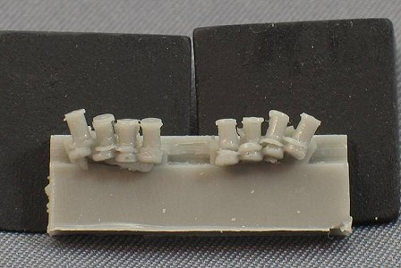 | Cutting resin parts from the pouring block and cleaning them up can sometimes a bit of a challenge, certainly when those parts are small and/or fragile. From a modeller's point of view, this means: the less contact with the pouring block, the better. However, from a manufactures point of view, more contact with the pouring block is better, because easier to cast with a higher success rate (meaning more profit) and less breakage during handling and transport. Therefore the mould maker often has to compromise. | ||
