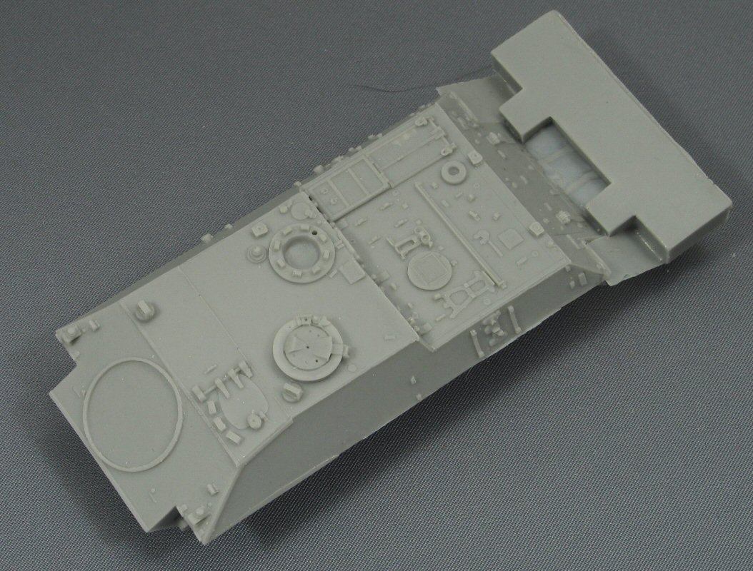 | Tools and other small stuff are moulded separate from the hull, something I like very much. However, one important item is absent in the kit, the superstructure FN MAG and its cradle, normally seen on the loaders position. | ||