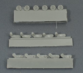 cardboard box. There is a small amount of flash on the smaller parts and some air bubbles can be seen. However, nothing dramatic. The level of detail in general is very sharp. Below some enlarged images as examples: a headlight and the spare track holder.. |
