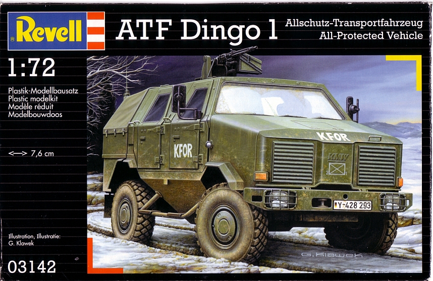 are given: I chose the Task Force Fox option for markings. The decals are not quite correct as presented on the decal sheet. The green TFF rectangles lack the narrow white border which I added by placing a slightly larger rectangle of white decal underneath the kit decal. Pictures of sister TFF Dingoes found at reference [1] show that there should also be German flag markings for the front bumper and on the right rear body panel. I made these from scratch, cobbling together other decal pieces to make the flags. This was quite easy to do since the flag consists of just three horizontal bars of black, red and yellow moving from top to bottom. I also made one additional flag which was attached to a piece of guitar wire used for an antenna and then attached it to the antenna mount at the rear of the vehicle. On the whole, this kit is quite easy to build. For me it took quite a bit longer to finish than my other armour builds, not because it was difficult, but because I wasn't thinking too clearly when I first bought the kit. Arriving at the point where I had to mask the windows I came to realize why I had returned to armour modelling. I was suffering from a form of “masking phobia” brought about by my latest aircraft projects. A return to armour modelling looked like it might be the cure, where masking for the most part is limited. Unfortunately I wasn’t quite cured of my phobia so this kit sat for a few weeks until I finally forced myself to get on with the masking and finish painting and building the kit. References Review sample purchased by the author. |
