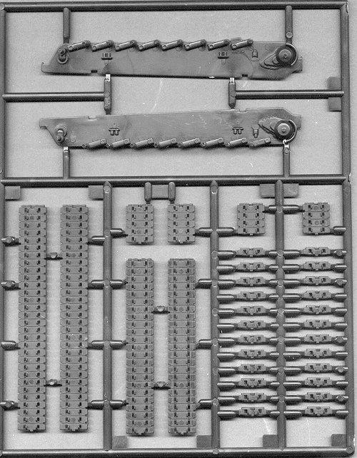 I think that the tracks are very well molded, but are a little chunky. Like the Panther kits, the individual links are too large, and consequently, the sprocket wheels have an incorrect number of teeth.