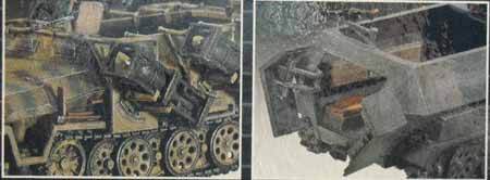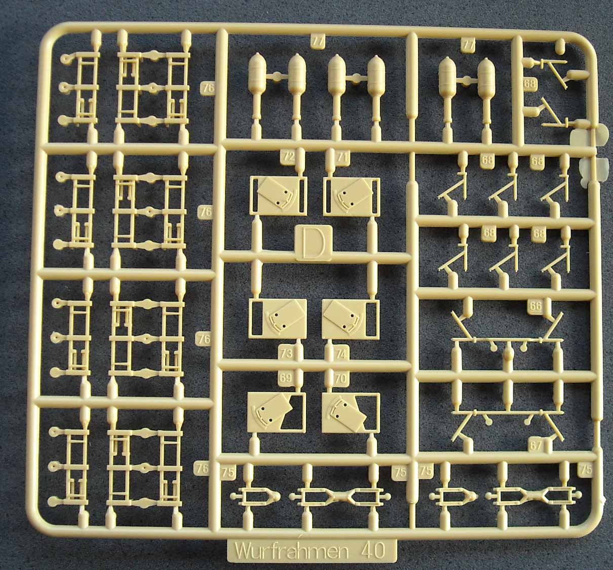 doors (something Dragon doesn't). a) Sd.Kfz.251/1 Stuka zu Fuss The last sprue in this kit is for the Wurfrahmen and rockets. In all respects these are nicely done. They are simpler than Dragon's, but probably much less fiddly to assemble. Note that by leaving these parts of, you can obtain an "ordinary" /1.