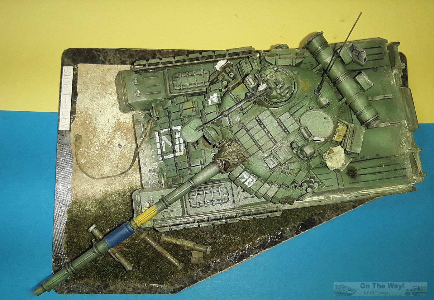 The completed model (below), painted in Russian Green depicts a T-80BV of perhaps the Russian 4th Guards Tank Division in the Sumy-Kharkiv axis, abandoned and captured after