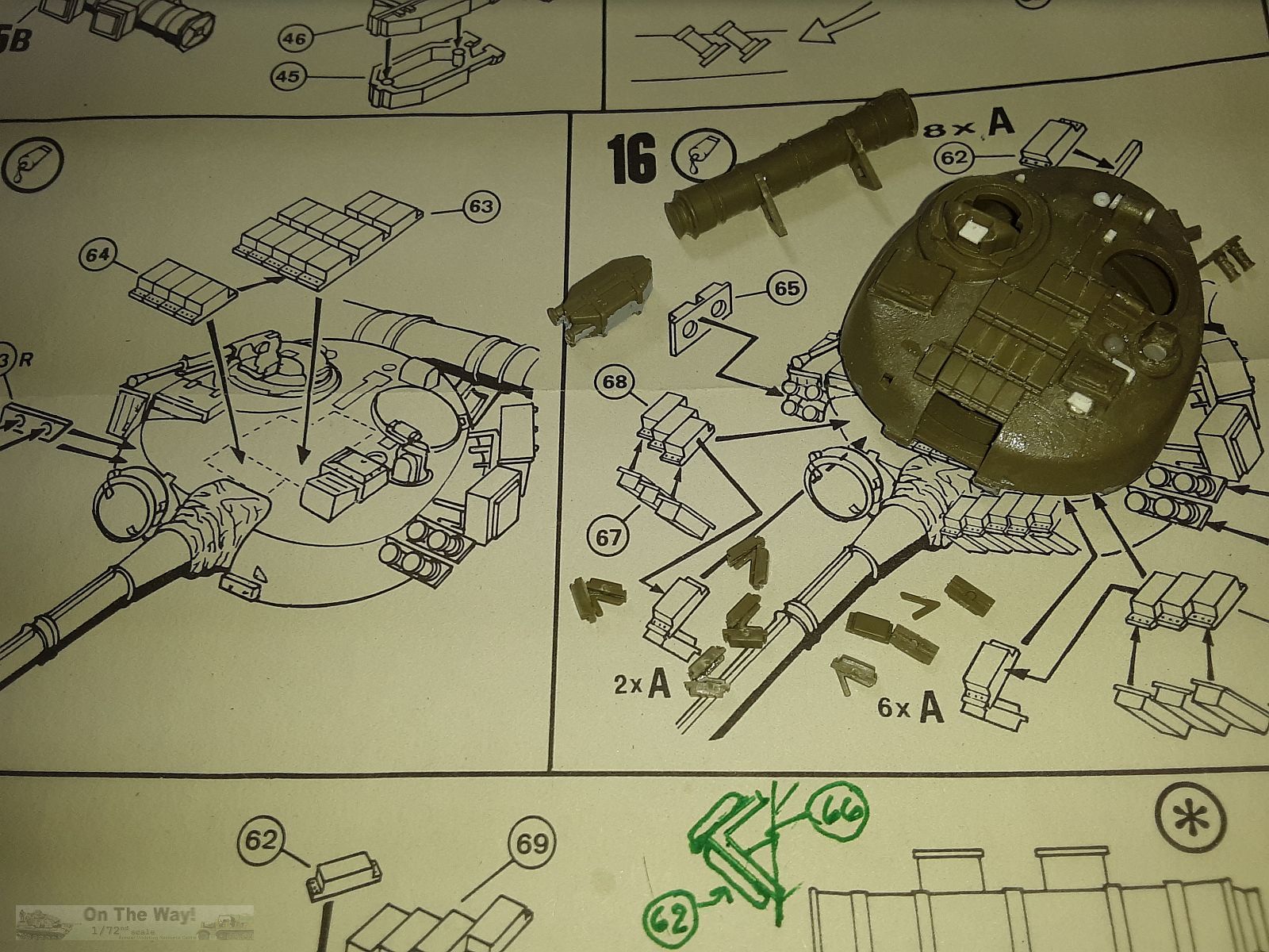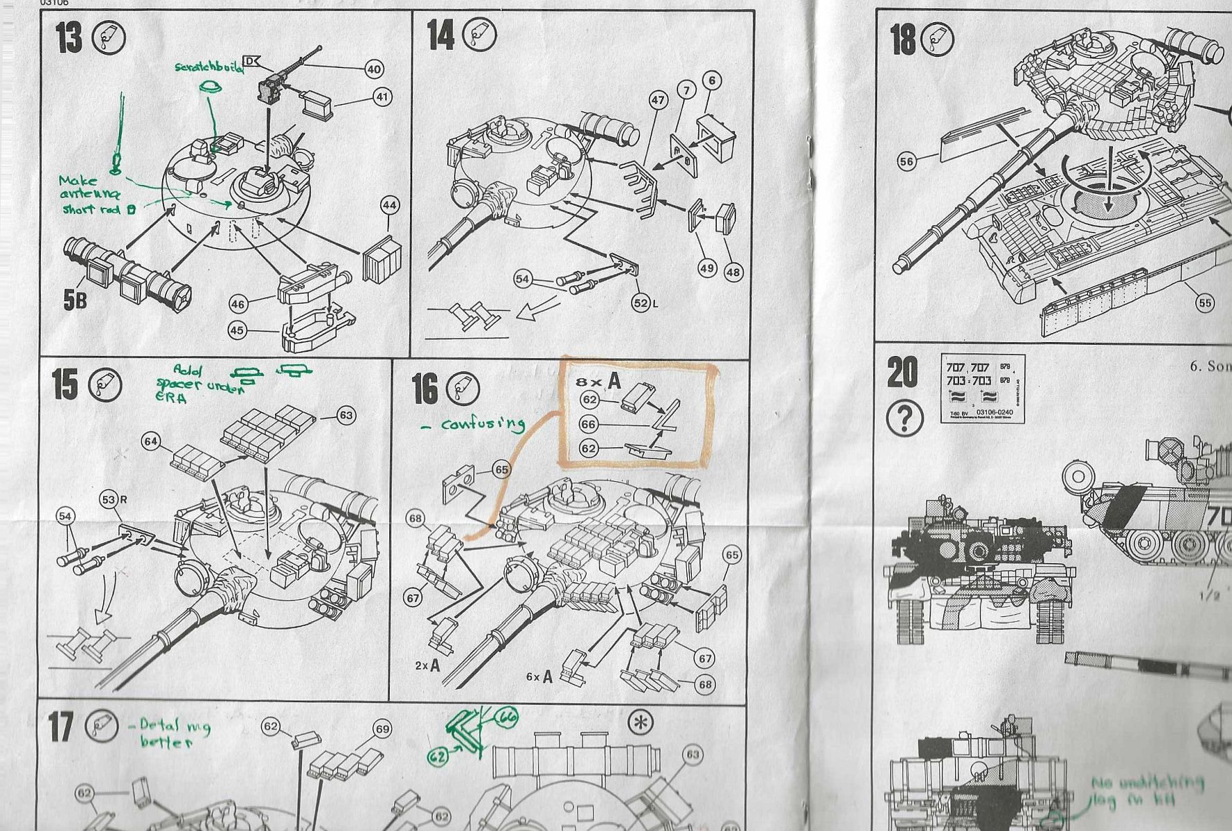 Applying the ERA blocks to the turret could be clearer so study reference photos well. ERA, parts 67 & 68, needed a scratchbuilt support frame similar to kit part-66.