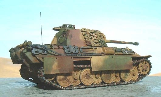Here are some shots of my kit-bashed Revell AG's late production Panther G.