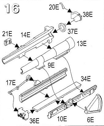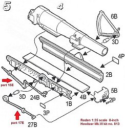 assembly. They were added afterwards using their 1/35 scale instructions as a guide (see diagram below right: red arrows & part numbers identify the corresponding