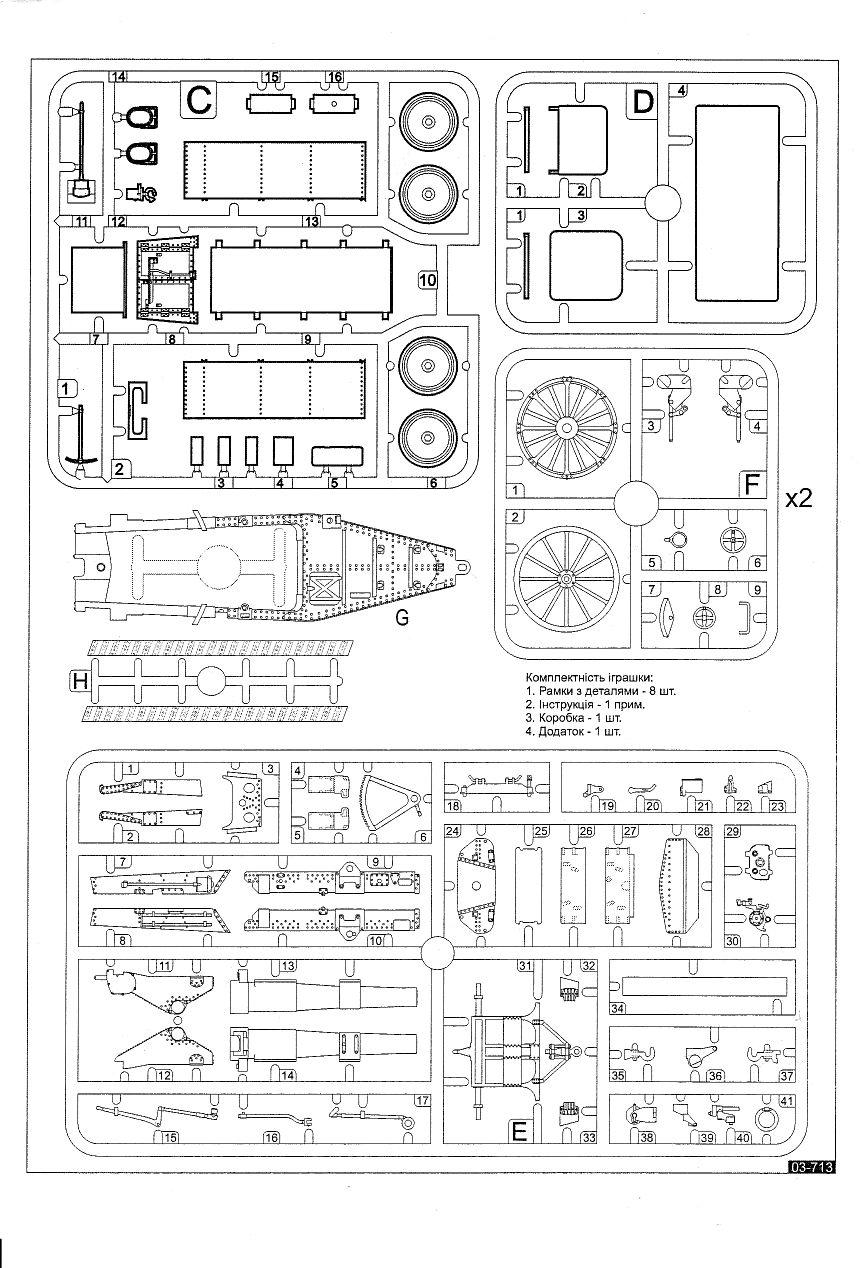 like plastic. The gun parts cover three of those plus a separate carriage part and a set of two vinyl like treads. There is an 10 page instruction sheet with colouring