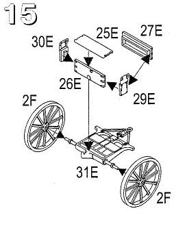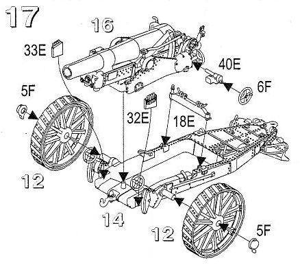 - Detail on top of part 3E was replaced and it was glued to the trail in this step to aid alignment of the trunnion walls, which