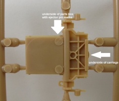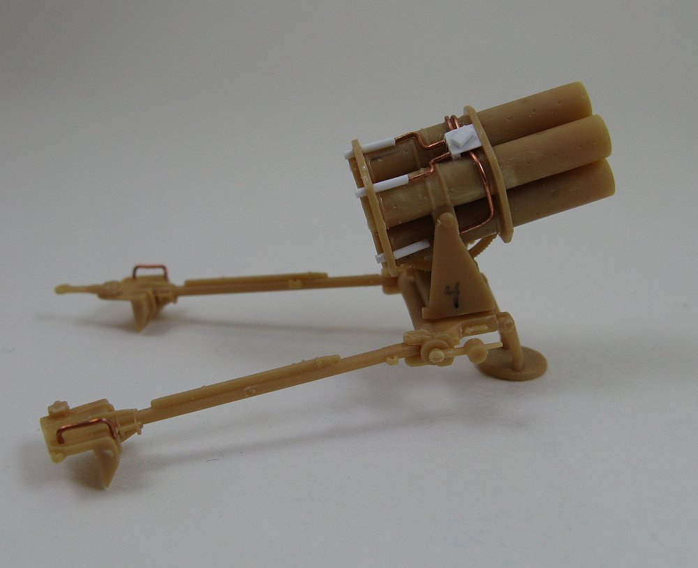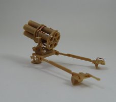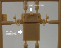 The carriage, which is a two piece affair on the real launcher, is unfortunately molded as a single piece unit. Being much too difficult a fix it was left as is.