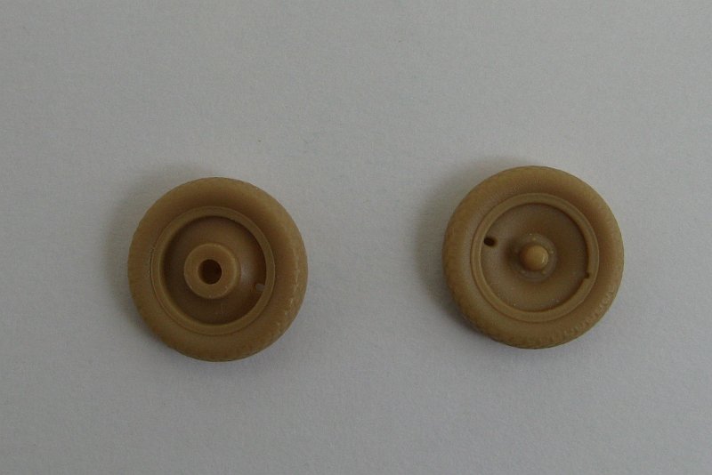 The wheels and tires are beautifully represented. They are a tight fit to the axle out of the box so I widened the holes a tad to ensure a good fit figuring that a coat of paint