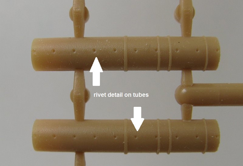 how to align the rivets that run down the sides of the tubes. The missing ignition wires and junction box are a must and I added them using some thin gauge copper wire and plastic rod.