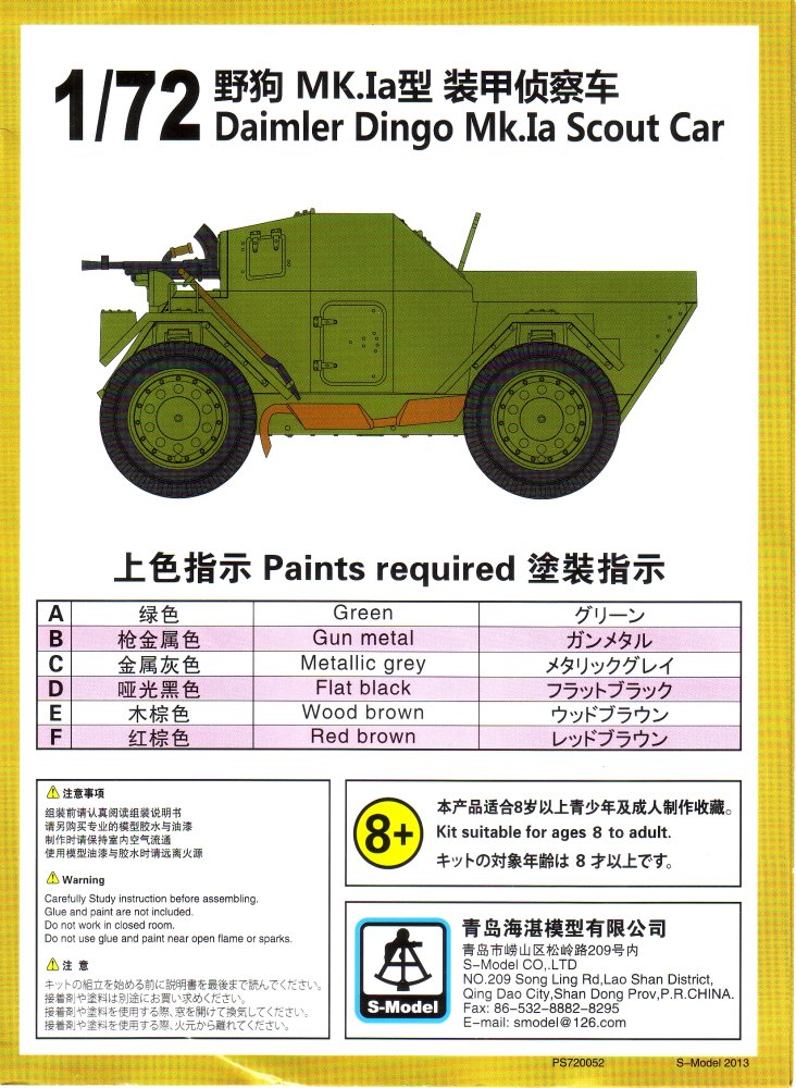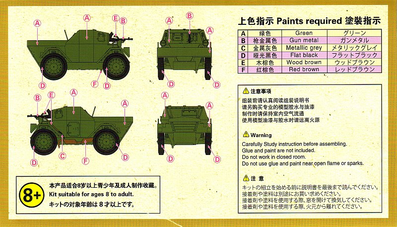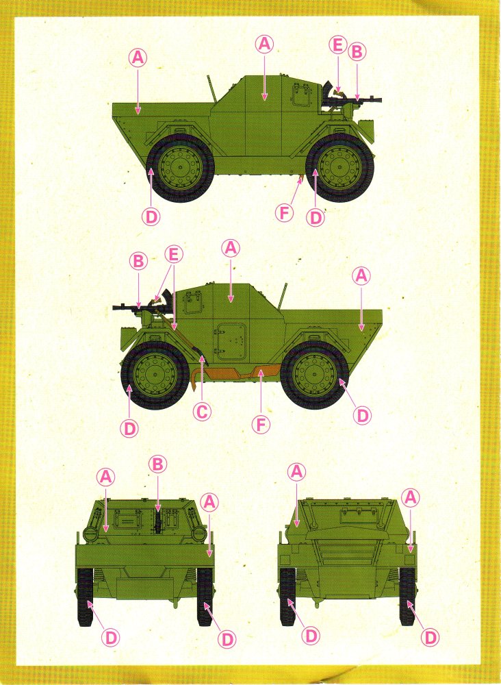 this kit is pretty much a scaled down and simplified version of the Miniart Dingo. It even copies most of the decal options for the Miniart kit.