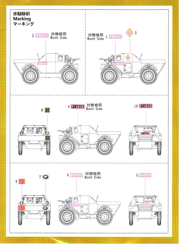 UK 1941. The decal sheet appears to be incomplete for this vehicle. It is missing a second HQ diamond and also the mailed fist emblem of the 6AD. Camouflage should also be two