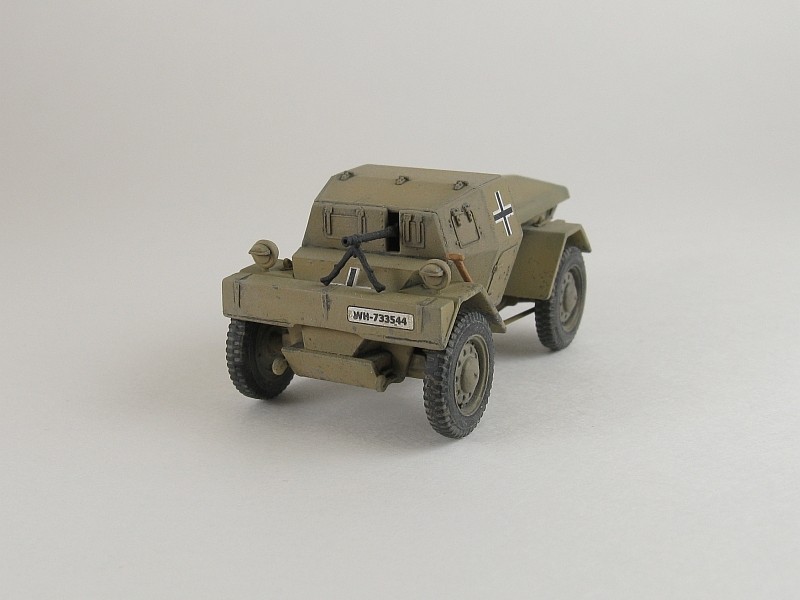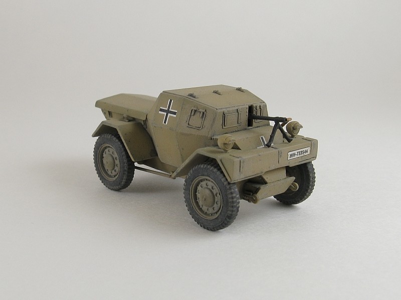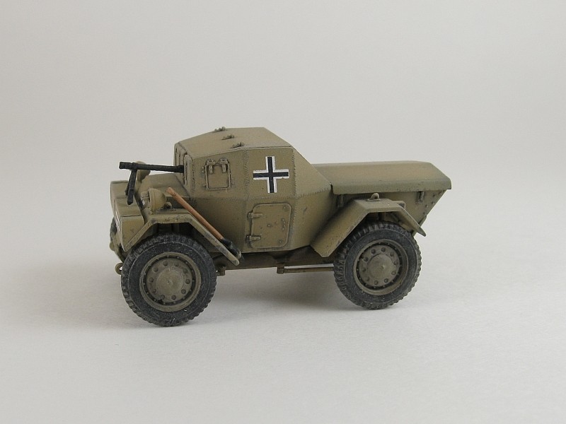 to do by simply deleting the support for the folding roof panels. And to make it German I needed an MG34 from my spare parts box and some WH plate decals.
