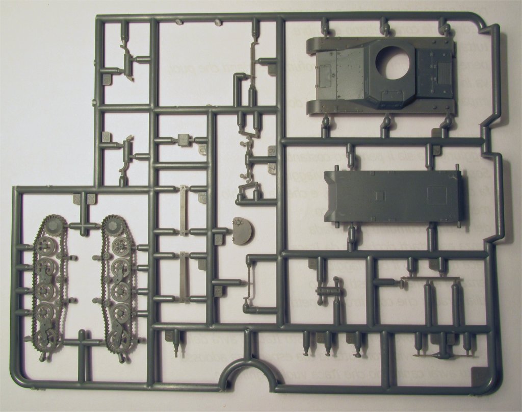 The main sprue contains most of the pieces necessary to build the vehicle, and it is the same sprue to be found in the Panzer IA kit. The second sprue contains extra visors (in case you decide to substitute the in-built ones, which I think you should do) and other small pieces; the third sprue is exclusive of this kit, and contains the casemate, the commander's hatch and the antenna base.