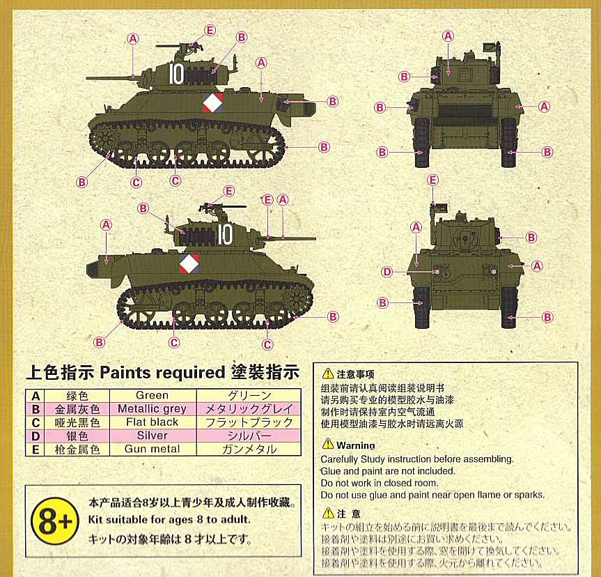 I am excited as well. . The detail is beautiful, right down to the "screws" that hold the engine deck in place, and the tracks (Vs. the ones that come with the PSC M5A1) But every kit has a few "shortcomings" so I will post the good and the bad, and let you make up your own mind. First off is the box, the art is very nice, and well meant to entice you to buy (worked on me). Now I would show you the back, but it is the same as the last page of the instructions so I'll pass on that. Here are the instructions. They are very clear, no missed steps, and easy to follow. |