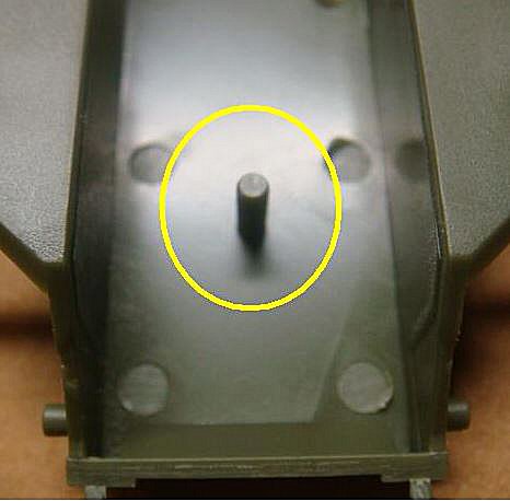 That post you see in the center is a locking "sleeve" that fits over a "post" in the lower hull. Aanyway