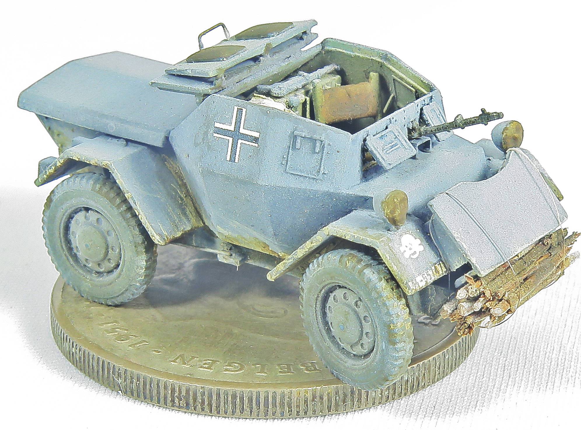 Decals The decals came from the spares box. I can't remember where each one came from, but the Balkenkreuze came from one of my ICM Sd.Kfz.222 kits (which is a great source of spare decals) and the licence plates were from JK Resin, which contains individual numbers, allowing me to copy the real licence plate.