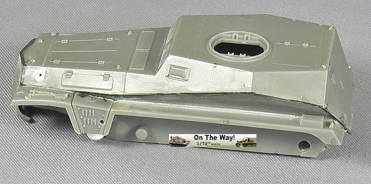 • I scribed a panel line on the engine deck, towards the front, even though I am not sure if this vehicle had the three-part engine deck.