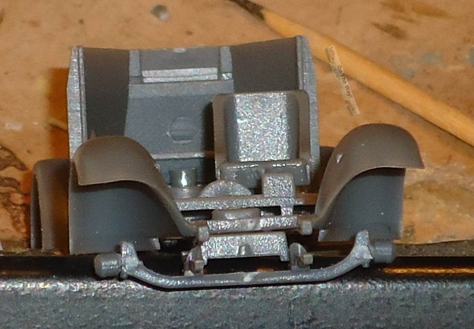 During painting I noted that the ridge between the tyres and the wheel rims might have been more pronounced to ease painting, while the front fenders always get in the way.