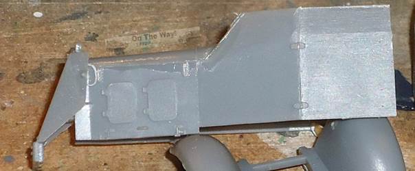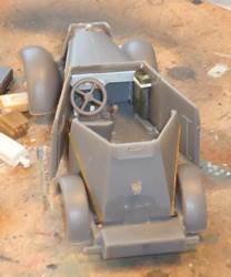 After I finished the model, I noticed that there is a see-through effect at the position where the shaft for the steering wheel enters the engine compartment. If I had caught it earlier, it would have been an easy fix to attach a scrap of plasticard. After almost finishing the model it was a lot harder.