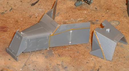 I improved this assembly by engraving the driver's visor on the inside, adding a dashboard, engraving the hinge line for the doors and adding weld beads (which I believe I grossly overdid, actually). Due to the way the kit is engineered, the doors are easy to open after minor surgery.
