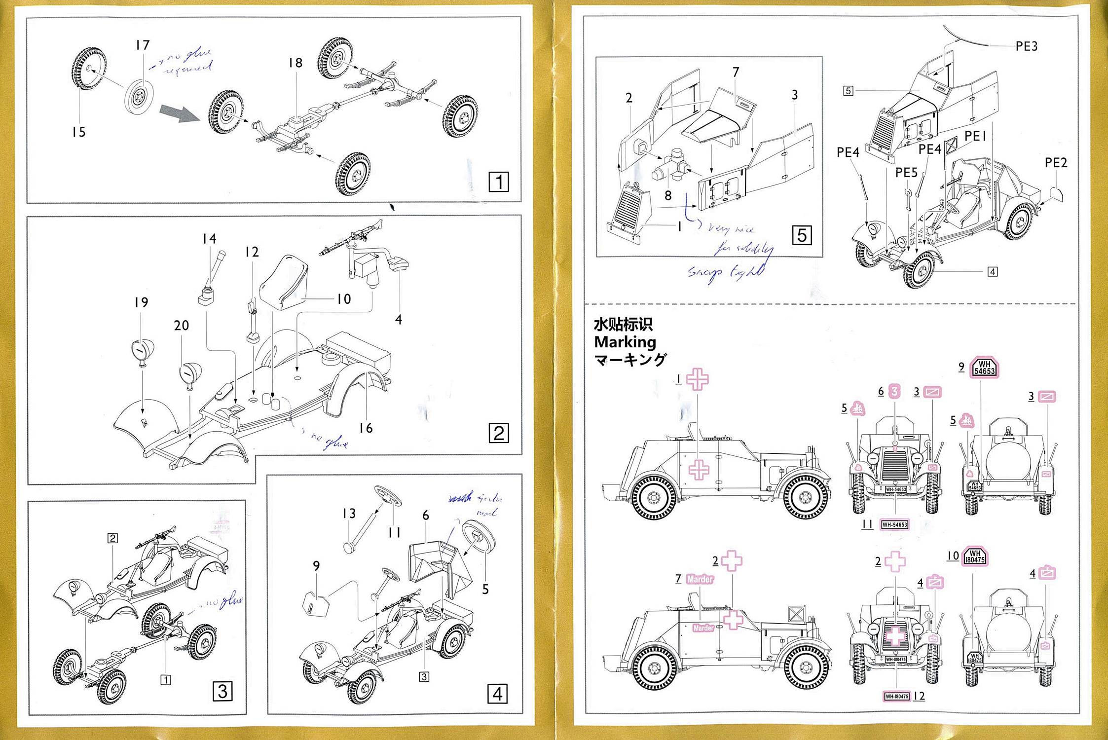 I decided to convert the second kit in the box as a Kfz.14 radio vehicle. For that purpose: