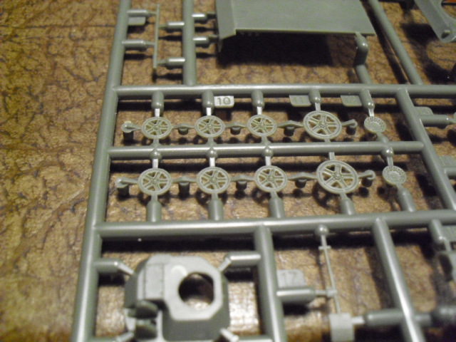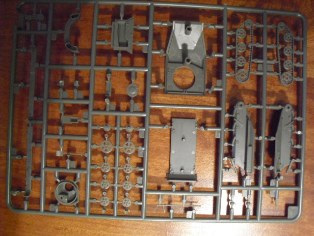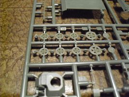 The gun, and design of mounting it , allows you to elevate it and the "turret" holding the gun can be rotated to simulate any position of use, suiting diorama or scenes in airlifting operations. A closer look at hull details and the single teeth in the well detailed track units show yet another surprise: Idler and running wheels are duplicated , you get loose doubles to add , as to have the flat moulded track teeth passing through them!