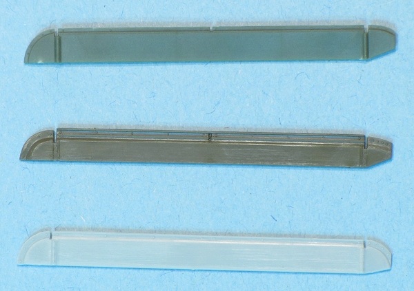 Below is the S-Model track guards (top), compared with ESCI (middle) and Trumpeter (bottom). Note the incorrect shape at the front end (right side) of the Trumpeter part.