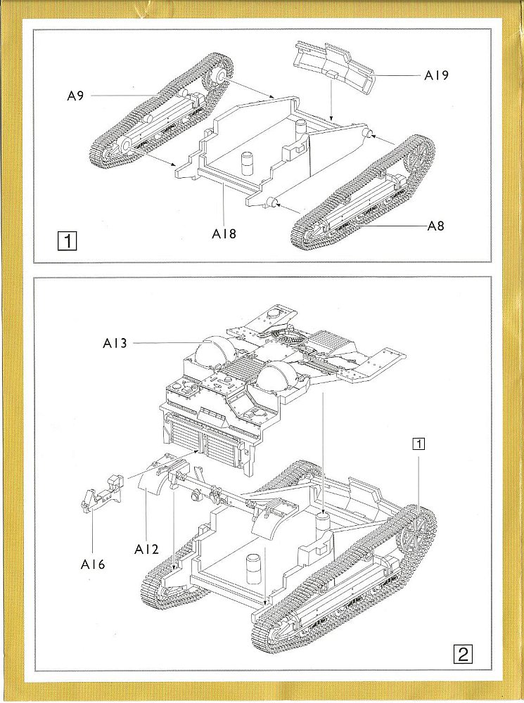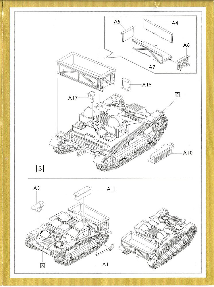 The upper hull and rear panel are moulded in a single part via slide moulds. Both of the crew domes (calottes) are moulded closed. The vision slits in the