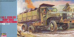 Variants included short wheelbase trucks for use as prime movers (artillery tractors), with and without winches on the front bumper, box vans, and fuel & water tanks carriers. Models from 1941 to about 1944 had all-metal civilian looking cabs (represented by Cooperativa’s and PST’s models). In 1944 a less resource & time consuming soft-top military cab was used for all three manufacturers. Airfix’s and Hasegawa’s kits represent the military cab. I understand that Academy will soon release 1/72 scale GMC’s in both the hard cab and the military cab.