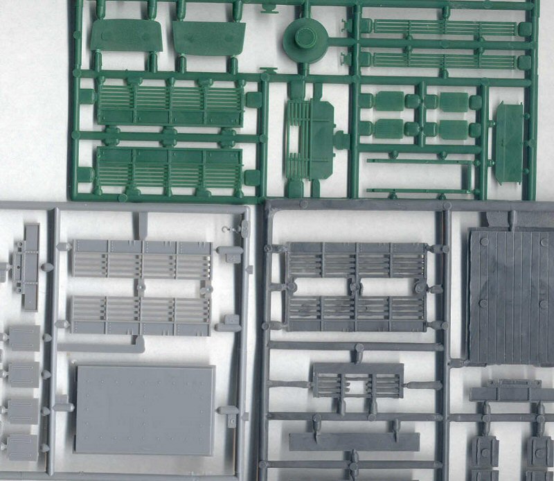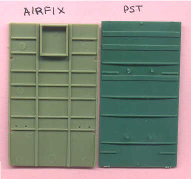 In the above scan of sprues from the PST, Hasegawa & Cooperativa you may be able to see that PST and Hasegawa offer the sharpest molding. PST and Airfix also give us a wood bed. Cooperativa gives us a wood cargo bed (with big positive ejection pin marks). Hasegawa features a steel cargo bed.