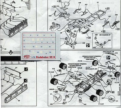 The AER/Cooperativa Studebaker kit is the most inconsistent. LOA is 1/72 and the distance between the hubs is 1/71, which are reasonable. The kit width however is 1/69 scale, much too wide. [Skilled modeler Ilya Grinberg has recently taken the best of both PST and Cooperative in combining both kits into a beautiful Studebaker US-6].