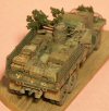 In the above photo of the partially assembled Airfix model we can see the cut down tilt with supports and the added Extra Tech etched brass parts (Tool rack on cab side, front grill, mudguards, rear bumpers). It was at this stage that I did the initial coat of paint so as to get all the hard to reach areas.