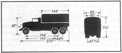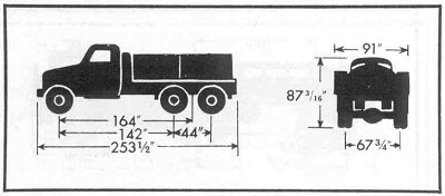 Above are vehicle dimensions from a 1945 US Army publication of the CCKW 353 cargo version at left, and at right the gasoline tank truck represented by Hasegawa. The Studebaker US-6 has the same dimensions. Please note that the cargo truck dimensions at left are for a truck with winch, while the tank truck dimensions are for a truck without a front winch.