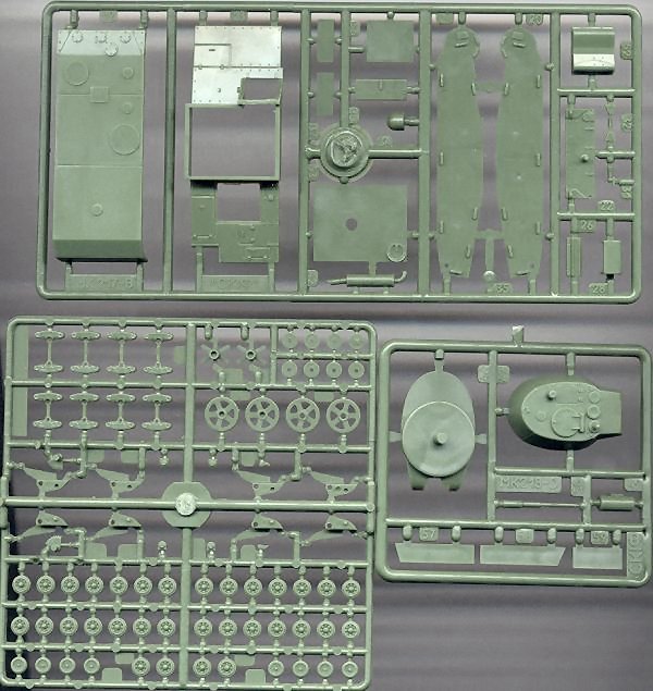 This kit maintains the same high quality standards set by the company's earlier releases of the Zis guns. The moldings are superb, with very crisp detail, little or no flash or sinkmarks, and a sensible parts breakdown. My main disappointment with the plastic parts is the fact that the turret hatches are molded shut. Not only should they have been molded open, but it also would have been nice to have some crew figures included as well. The driver's hatch on the front hull gives the option of having it open or closed, but there is no interior detail, which will need to be added if you keep the hatch open.