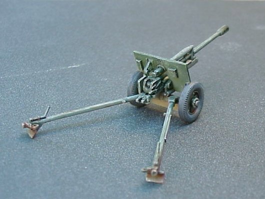 This is a really cute little model, and takes only a few hours to build. This gun, and it's close cousin the Zis-2, are Skif's first 1/72nd scale kits, and I hope they keep up the high quality for their upcoming T-26's. Quality of the plastic and molding is exceptional. The level of detail is superb for a kit this small, with so few parts. Assembly was very straightforward, with most of my time spent sanding off the mold seam along the cannon barrel. The muzzle brake was molded solid, so I spent some time drilling out the baffles, and opening up the end. Although it wouldn't be quite as effective, a heavy wash in the baffles would do pretty well instead of drilling.