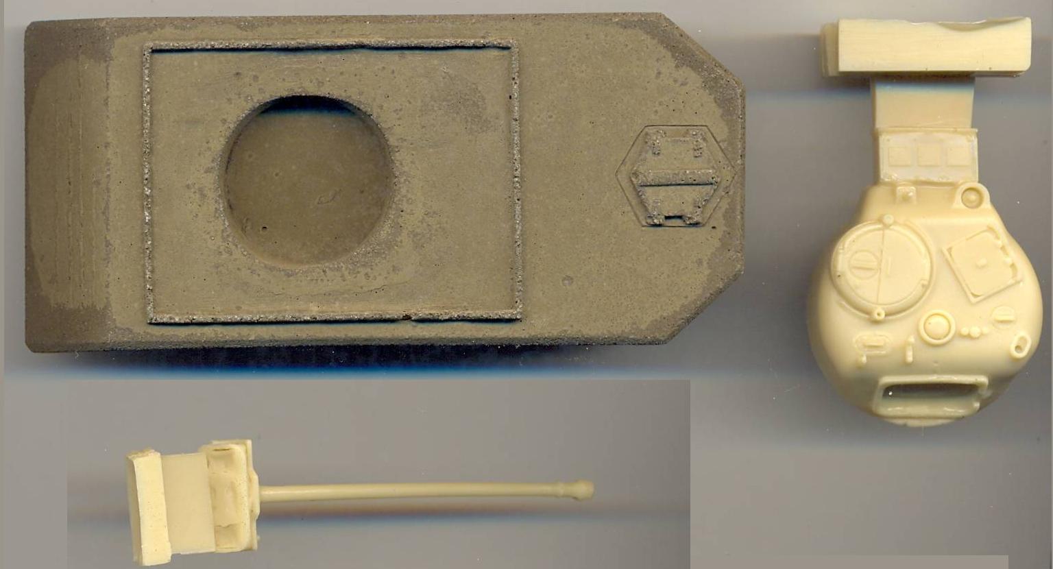 | This set represents a very original topic: the post-war use by the Dutch of their surplus Shermans, by digging them in and encasing them in concrete as strongpoints on the Ijsel-line. Various versions existed, e.g. with Ram turrets, Sherman turrets with an MG instead of the main gun and Firefly turrets. The set contains three parts. A hefty concrete part and two resin parts. This is one of the few instances where real concrete has been used for model building purposes and I am not convinced it was a wise decision. First of all, the part is very roughly cast, and while this might be convincing for the actual concrete casing, it completely ruins the detail of the splash guard and rear hatch, being riddled with air bubbles. Worse, having rubbed my fingers over that said hatch, I know find myself with concrete dust on my workbench, and a hatch that only vaguely resembles that in the pictures below (taken before the rubbing). Then again, I would have replaced it with styrene anyway. Moreover, most of these bunkers were dug in, so you will either have to create a diorama with a sufficient height to dig it in, or (somehow) remove the lower part of the concrete block. Reiterating, I am not convinced. The two resin parts, on the other hand, are far better, with only a minor seam to clean up, the occasional pinhole to fill in and a barrel to be straightened. For those who are wondering: yes, that turret bears a very uncanny resemblance to an assembled Dragon Firefly turret, which started me thinking. When you compare the price of a Dragon Sherman Firefly (before the recent price hike) with the price of this set, and consider that the top of the concrete part might easily be scratchbuilt, one could question the economic wisdom of this set.