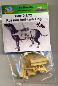 an explosive strapped to their backs. This set represents such a dog (with explosives), apparently a German Shepherd (no pun intended), with two Soviet soldiers. Sculpting