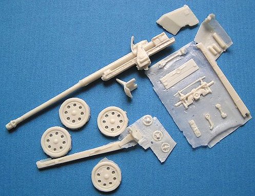 This is a very simple model. It doesn't have many parts and the few there are aren't too well done. The whole gun is done as a single piece and that gives it very soft details. The lack of building instructions will make it a bit tricky to put together so it might just be as well that there aren't too many parts. There is a sheet with a 4-view drawing of the gun and some photos of the real thing but I'm still not sure where a couple of parts should go.