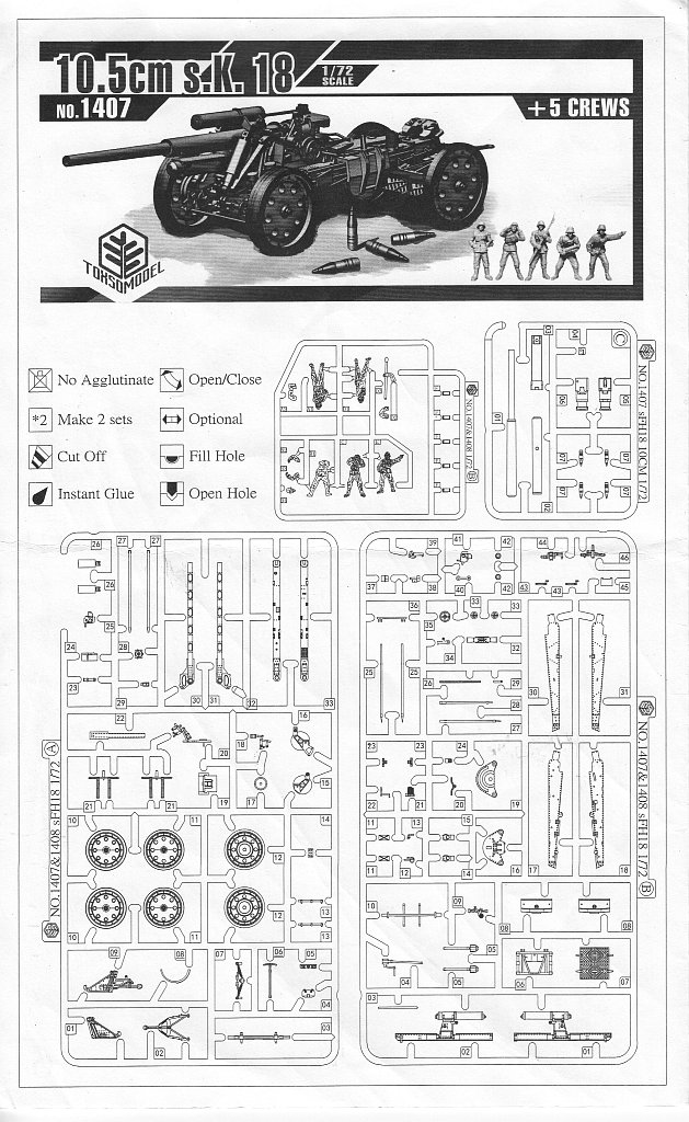 This kit has been re-popped by Italeri (kit 7082 - German s.FH.18 with crew (15cm) & 10,5cm sK18). It is identical to the Toxso kit but containing