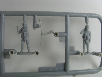 I'm not very educated when it comes to figures but to me these seem atrocious. Facial features are almost melted looking, reminding me more of a Hollywood Egyptian mummy than that of a living being ("A face only a mother could love!"). Hands are blobbish, devoid of anything resembling fingers. Add in the fact that the plastic is of the soft, vinyl like variety, and the figures are definitely not up to snuff with the rest of the kit.