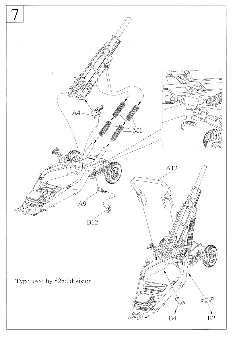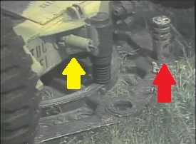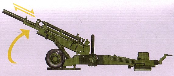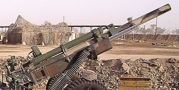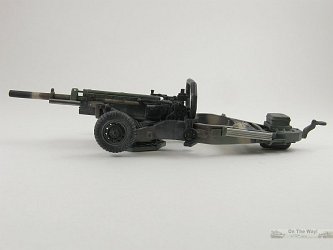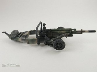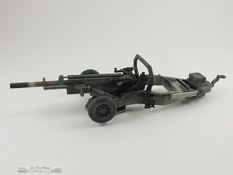 - For early versions of the gun, ca. the Vietnam era, perform the following changes: remove the bracket and rod pointed to by the red and black arrows in the picture of the barrel modifications above, discard the box on top of the rear portion of the box trail and remove its tray, and don't use the rollbar. These guns would be in overall olive drab camo and often sported US ARMY in either yellow or white on the recuperator. Some youtube.com video from the Vietnam War era also shows the gun sometimes used a large muzzle brake. It appears that early post-Vietnam guns received the box on the trail but not the extra bracket & rod in front of the recuperator.