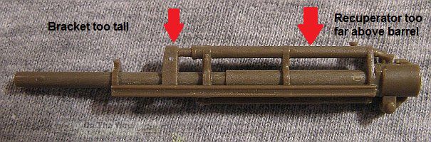Construction has uncovered this appalling error which went unnoticed in my original preview. The recuperator cylinder is mounted much too high above the barrel when compared to pictures of the real gun (refer to pictures below).