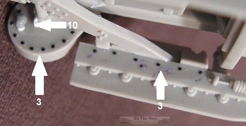 vertical, and the three holes in the bottom wheels of the track units had to be opened up some to get the lower half of the mud guards (parts A6 & A7) to slot