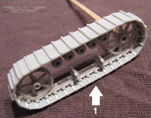disappointment. I applaud Trumpeter for molding them as a single part (containing the drive sprocket, idler and track) to ease construction. Unfortunately mold alignment issues leaves